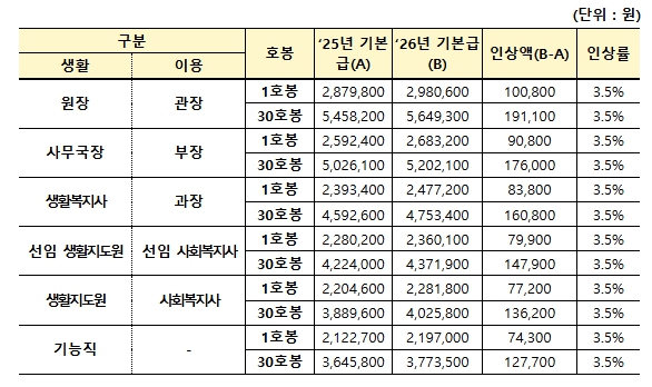 - '26년 기본급 3.5% 인상, 국고지원시설 예산은 7.6% 증액